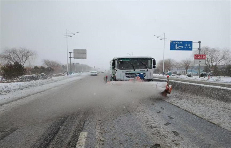 降雪后,按照“雪隨下隨清”的原則,待命隊(duì)員迅速行動,在包保路段通過滾刷鏟雪、撒布融雪劑、人工清掃等方式循環(huán)作業(yè),高效開展除雪工作。