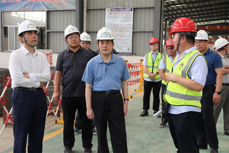 郝吉虎一行深入公司濱城生產(chǎn)基地,實(shí)地查看了產(chǎn)品展示區(qū)、拌合站及預(yù)制車間等,詳細(xì)了解了基地生產(chǎn)經(jīng)營(yíng)情況。